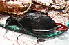 En teist har gått i garnet. Tusenvis av sjøfugl ender sine dager på denne måten under det kystnære garnfisket i Norge. (Foto: Kirstin Fangel, NINA)
