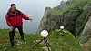 Forskerne bruker automatiske kamera for å overvåke sjøfuglene på Bjørnøya, her ved sjøfuglforsker Hallvard Strøm. (Foto: Morten Ekker / Miljødirektoratet)Morten Ekker