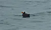 En topplunde ble for første gang observert i Norge, på Bjørnøya, i 2019. Fuglen ble sett sammen med lundefuglene og dro etter en kort stund vestover og er siden ikke sett igjen. (Foto: Guus Wellesen / Norsk Polarinstitutt)