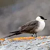 Under arbeid med fangst av tyvjo i Dyrvika ved Blomstrandbreen observerte forskere en rosenmåke sammen med en flokk av krykkjer. Rosenmåke er en meget sjelden gjest i Kongsfjorden. (Foto: Børge Moe / NINA)
