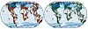 Illustrasjonen viser hvordan planetens vegetasjon endret seg for 21 000 til 14 000 år siden. Hver firkant representerer et av de stedene forskerne har data fra. De oransje firkantene viser endringer i plantearter. De grønne viser endringer i plantesamfunn, for eksempel tundra som blir til skog. Jo sterkere oransje eller grønn, jo mer endring har det foregått. De blå skaleringene viser hvor mye temperaturen har steget: jo mørkere blå, jo høyere temperatur i det området. (Figur: Nolan et al., Science 2018)