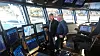 Skipper Karl Otto Risbakk studerer MAREANO-kart sammen med NGU-forsker Oddvar Longva på broa på «Atlantic Viking». (Foto: NGU)