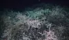 Dei første teikna på bambuskorall-hagen. Kvite glassvampar, kjøttetande svampar, mykkorallar og sekkedyr har slått seg ned på eit teppe av døde bambuskorallar, kjent som korallgrus.(Foto: Mareano / Havforskningsinstituttet)