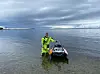 Geir Johnsen, professor i marin biologi, med en «SeaBee» fra Maritime Robotics som er utstyrt med et hyperspektralt kamera som skanner havet. (Foto: Asgeir J. Sørensen)