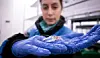 Hummaryngel er meistrar i å skjule seg - faktisk greier ikkje forskarane å finne dei i naturen. Eksemplaret på bildet er klekt i laben. Her med Rosa Escobar Lux.