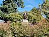 Tvers over veien for huset der han bodde, står en byste av Henry Jackson. Nå bor datteren i huset.(Foto: Nina Kristiansen)