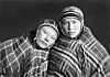 Andre har tydelige, lyse reinsdyrhår på både klær og hodeplagg.
