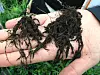 Aggregater er jordklumper som gjør at jorda blir som en svamp som holder bedre på vann og næringsstoffer. Hvis ser godt etter kan man se at røttene er dekket med mange av disse bitte små klumpene.(Foto: Reidun Pommeresche)