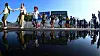 Klimaforkjempere danner en lang rekke. De utfører et rituale for folkene i Amazonas foran Klimatoppmøtet i Belem i Brasil nå i november.