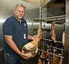 Tom Christen Johannessen arbeider med å utvikle nye produkter av kjøtt. På bildet er det snakk om spekemat – til høsten blir det mer blod.(Arkivfoto: Georg Mathisen)