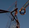 Så kommer dråpen rennende forbi. Dråpen er laget av en væske som leder elektrisk strøm. Hva skjer?