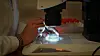 Khuong van Dinh ser på hoppekreps i mikroskop. Han ser hvordan de utvikler seg og hvordan de tilpasser seg når de eksponeres for miljøgifter(Foto: Elina Melteig)