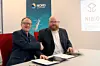 Divisjonsdirektør Arne Hermansen fra NIBIO og dekan Ketil Eiane fra Nord universitet signerer avtalen om utvikle en algenæring i nord. (Foto: Per Jarl Elle)