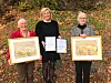 Halldis Myhre Tvete, t.v., og Kari Bentzen, t.h., mottok Plantearvenprisen 2019 for reetablering av hagen ved Ringebu Prestegard. Prisutdelar var divisjonsdirektør Hildegunn Norheim i NIBIO Kart og statistikk. (Foto: Nina Sæther).