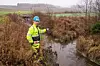 Jonas Reinemo er ein av dei som tek vassprøvar i nærleiken av Follobanen. (Foto: Anette Tjomsland)