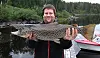 Marius Andersen, en ivrig sportsfisker og kjøkkensjef ved NIBIO Svanhovd, viser fram fangsten fra Pasvikelva. Han og andre sportsfiskere kan hjelpe forskerne med å få oversikt over ørretbestanden i vassdraget. (Foto: NIBIO)