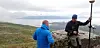 En steinblokk legger til rette for etablering og vekst for ei bjørk i tregrensa. Forskerne måler posisjon og tredata. (Foto: Ida Marielle Mienna)