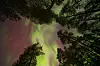 Nordlys på himmelen mellom furutrærne ved Fjorda i Innlandet natt til lørdag.