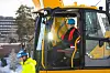Statsminister Erna Solberg i en gravemaskin i februar 2019, instruert av Erling Sande, markerer byggestart på det som blir Norges største universitetsbygg. Livsvitenskapsbygget ved Universitetet i Oslo. Bygget skal huse 1.600 studenter og 1.000 ansatte.