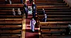 Begravelse i Grefsen kirke i Oslo under koronatiden i mars. De frammøtte og familie sitter med god avstand til hverandre.