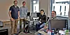 Ti studentbedrifter fra NTNU får støtte fra Forskningsrådet. Her representert ved folkene i Sensero. Øyvind Aarø, Dag Drejer, Andreas Risvaag og Kim Erling Rasmussen. (Foto: Steinar Brandslet, NTNU)