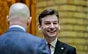 Forsknings- og høyere utdanningsminister Henrik Asheim (H) mottok torsdag utredningen til Universitets- og høyskolelovutvalget. Her er han i Stortingets vandrehall.