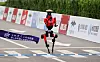 En rød robot krysser mållinjen etter å ha løpt 21 kilometer i Beijings gater.