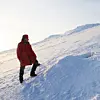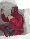 Thor S. Larsen ved hi nr. 31 i Bogen, området med størst hitetthet. (Foto: Øystein Overrein/Norsk Polarinstitutt)
