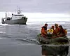 Dykkere på vei mot dykkeroppdrag utenfor den lille øya Moffen på nordsiden av Svalbard i 1980.