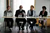 Taina Bucher, Charles Ess, Anders Fagerjord og Elisabeth Staksrud diskuterte fremtidens medieforskning under Institutt for medier og kommunikasjon sitt 30-årsjubileum fredag 25. august. (Foto: Fillip-André Baarøy)